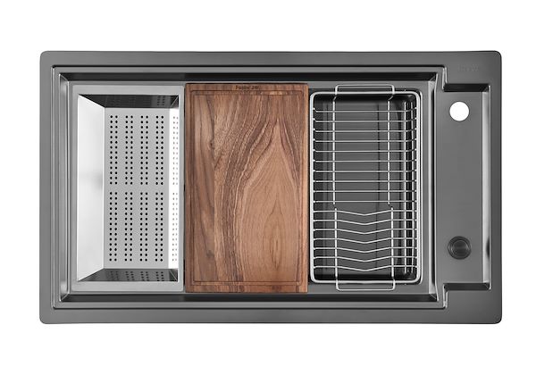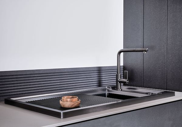 Le trop plein est un dispositif de sécurité toujours présent sur les éviers Foster qui empêche l'eau de déborder de la cuve en cas d'oubli. La solution du vidange périmétrique améliore l'esthétique grâce à sa forme carrée et essentielle.